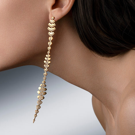 du reptile et ainsi le réinterpréter en un motif stylisé, graphique et sensuel. Les écailles, symboles de force et de renouveau, deviennent un motif central, imprégnant chaque pièce de joaillerie d'une aura de fascination et de liberté. L'or blanc ou rose 18 carats, associé aux éclats des diamants GVS, confère à chaque pièce une élégance intemporelle et une sophistication incomparable.