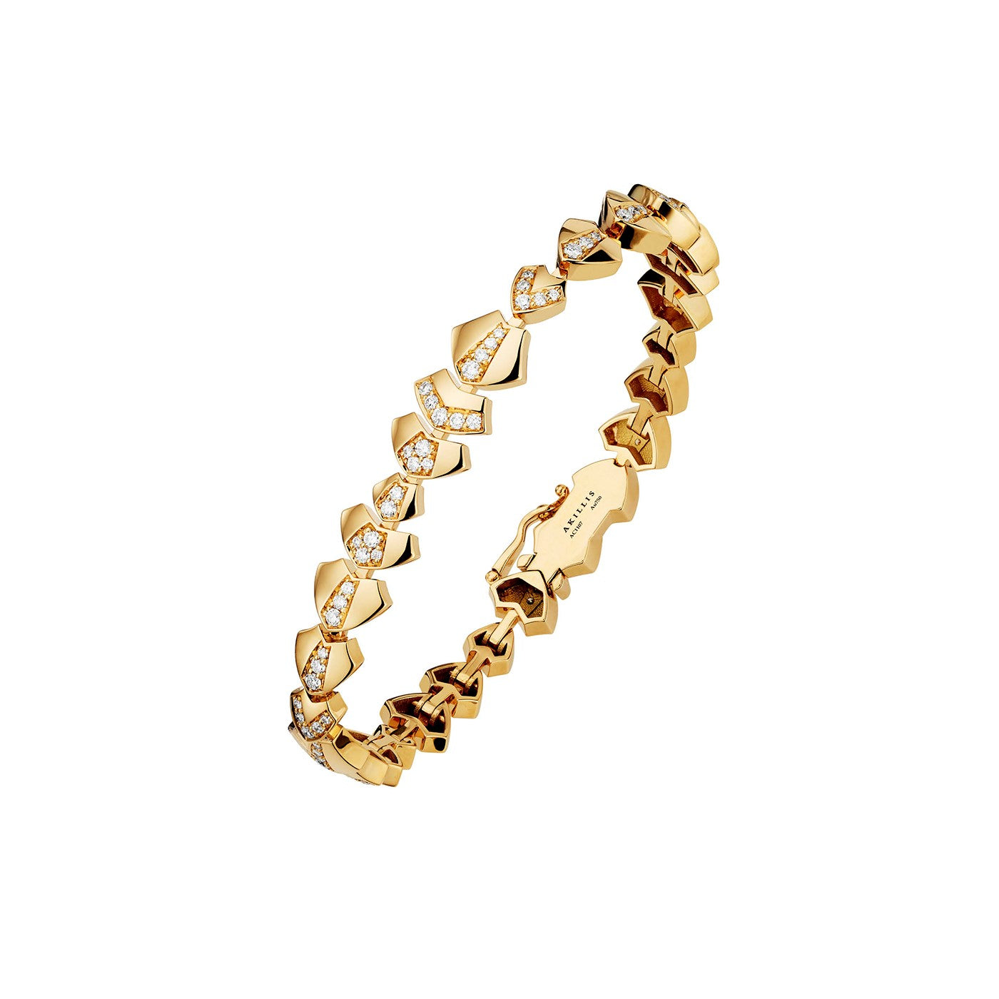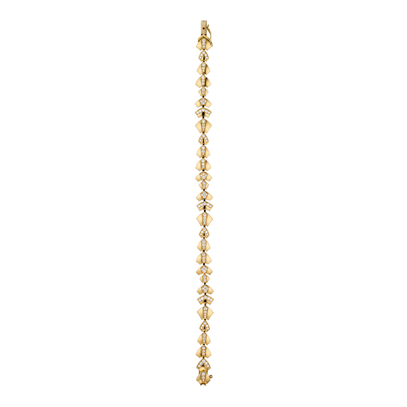 Bracelet articulé petit modèle pour homme et femme de la collection Python en or jaune 18 carats, serti de diamants GVS pour un caratage total de 1,2ct.