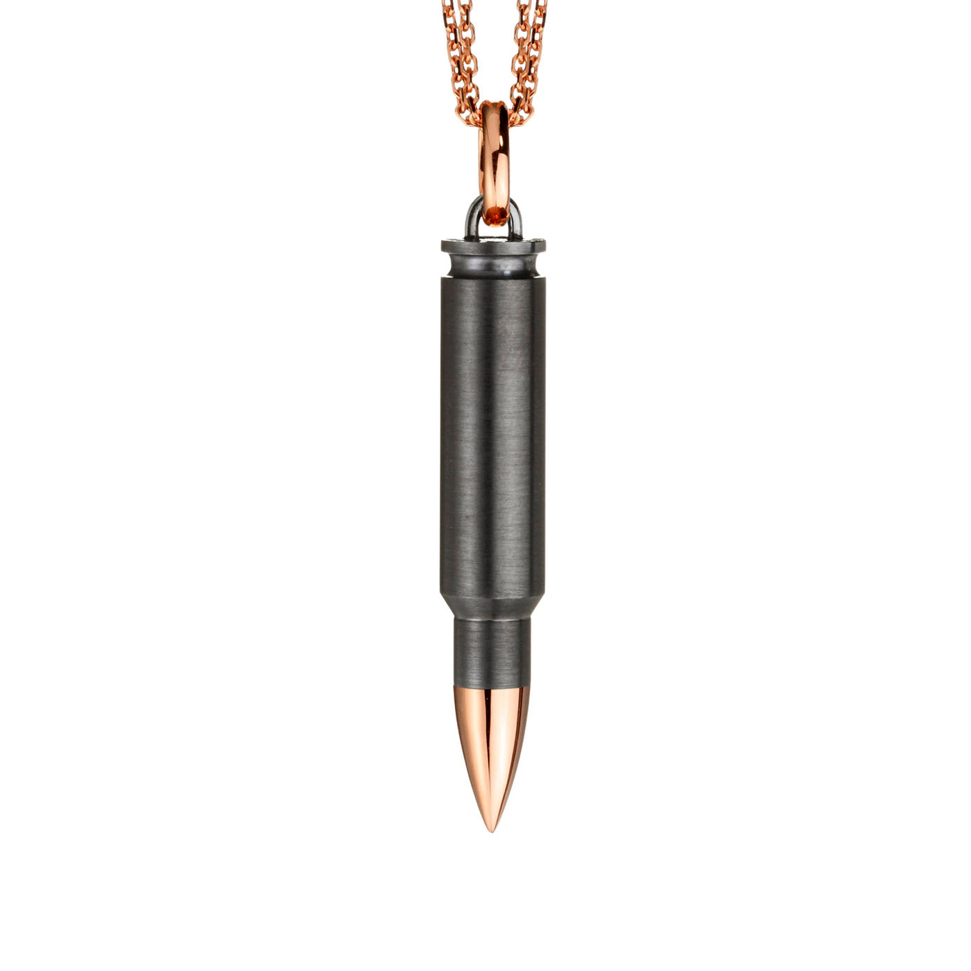 Unisex necklace from the Fatal Attraction collection in 18k rose gold with the body in black DLC titanium.