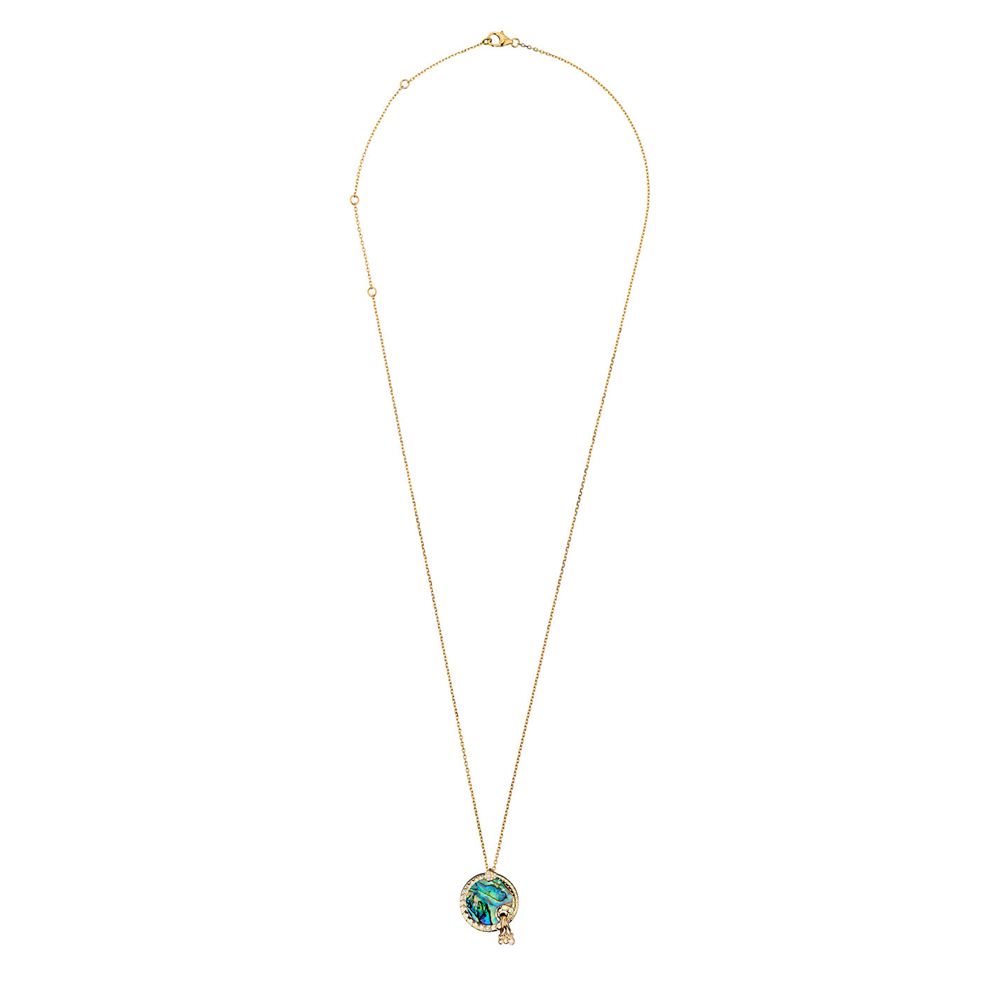 Infinity necklace for women, small model, from the Talisman capsule collection. Crafted in 18k yellow gold, set with a 2.4ct abalone and 32 G-VS paving diamonds totaling 0.197ct. Numbered piece.