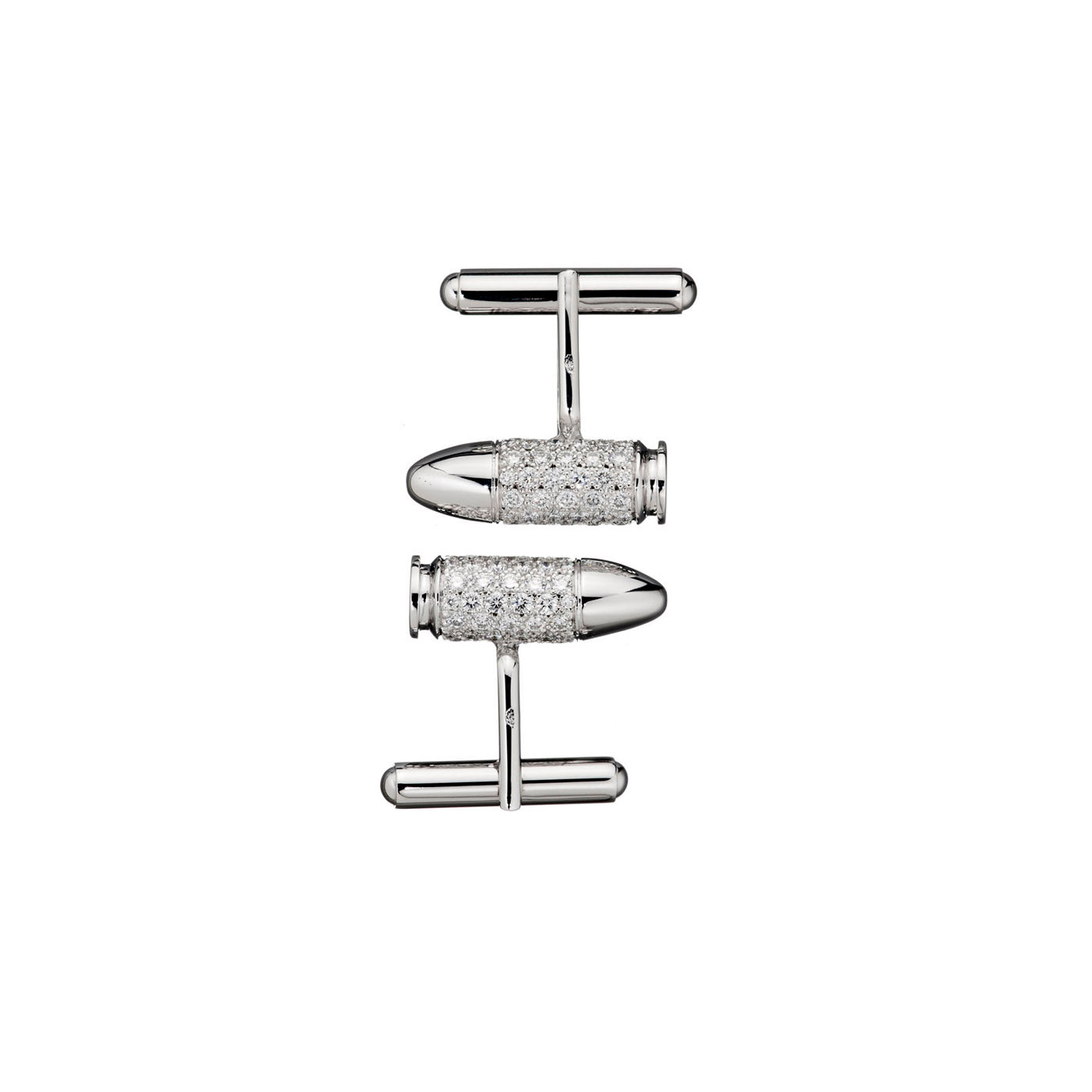 Men's cufflinks from the Bang Bang collection in 18k white gold, with the body set with GVS diamonds, for a total carat weight of 2.63.