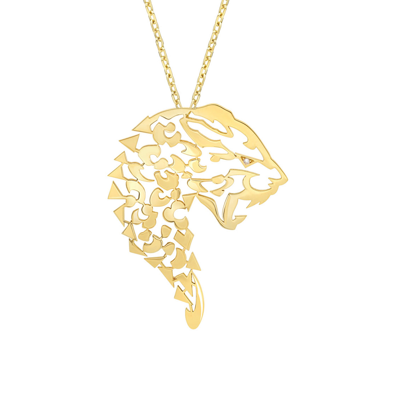 Jaguar necklace for men and women from the Animal Tattoo collection in 18k yellow gold set with a GVS diamond with a total carat weight of 0.01.