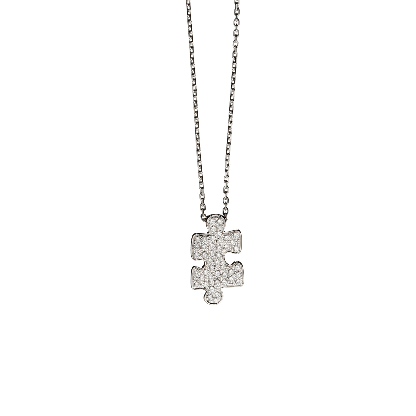 Necklace for women from the Mini Puzzle collection in 18k white gold set with GVS diamonds for a total carat weight of 0.14.