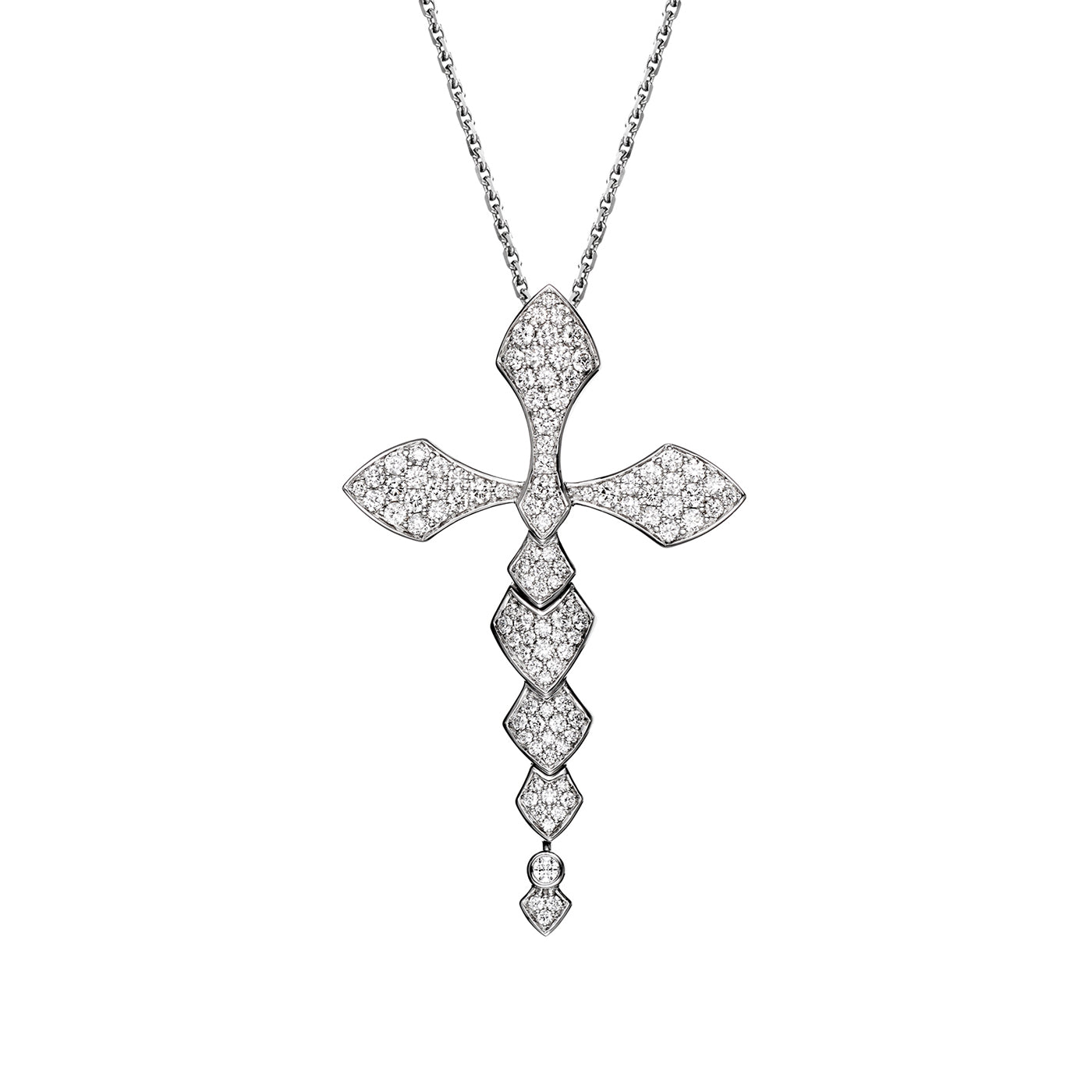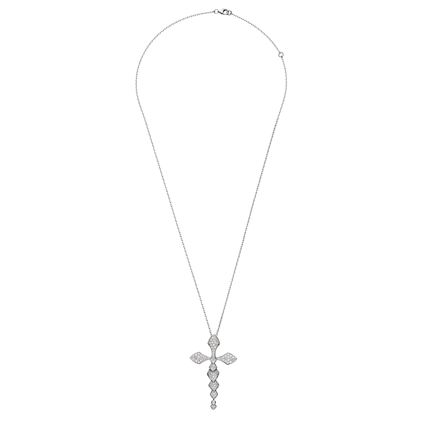 Medium-sized necklace for both men and women from the Python collection in 18k white gold set with GVS diamonds for a total carat weight of 0.2.