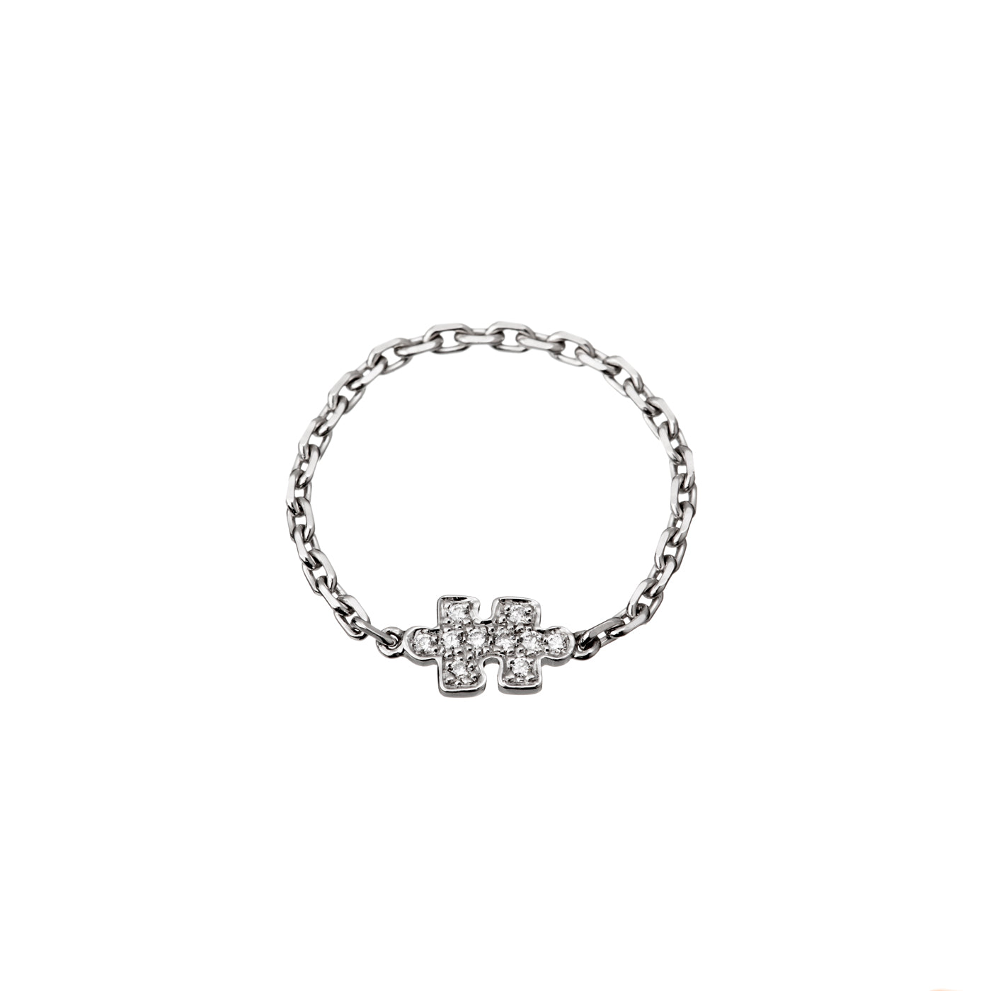 Chain ring for women from the Mini Puzzle collection in 18k white gold set with GVS diamonds for a total carat weight of 0.05.