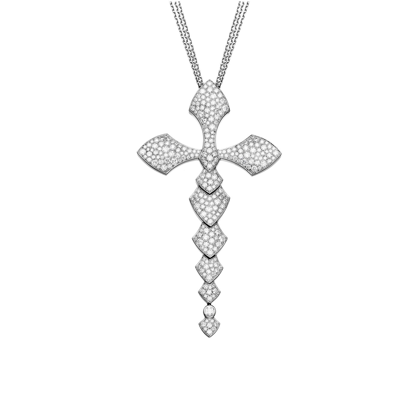 Large necklace for both men and women from the Python collection in 18k white gold set with GVS diamonds for a total carat weight of 1.31.